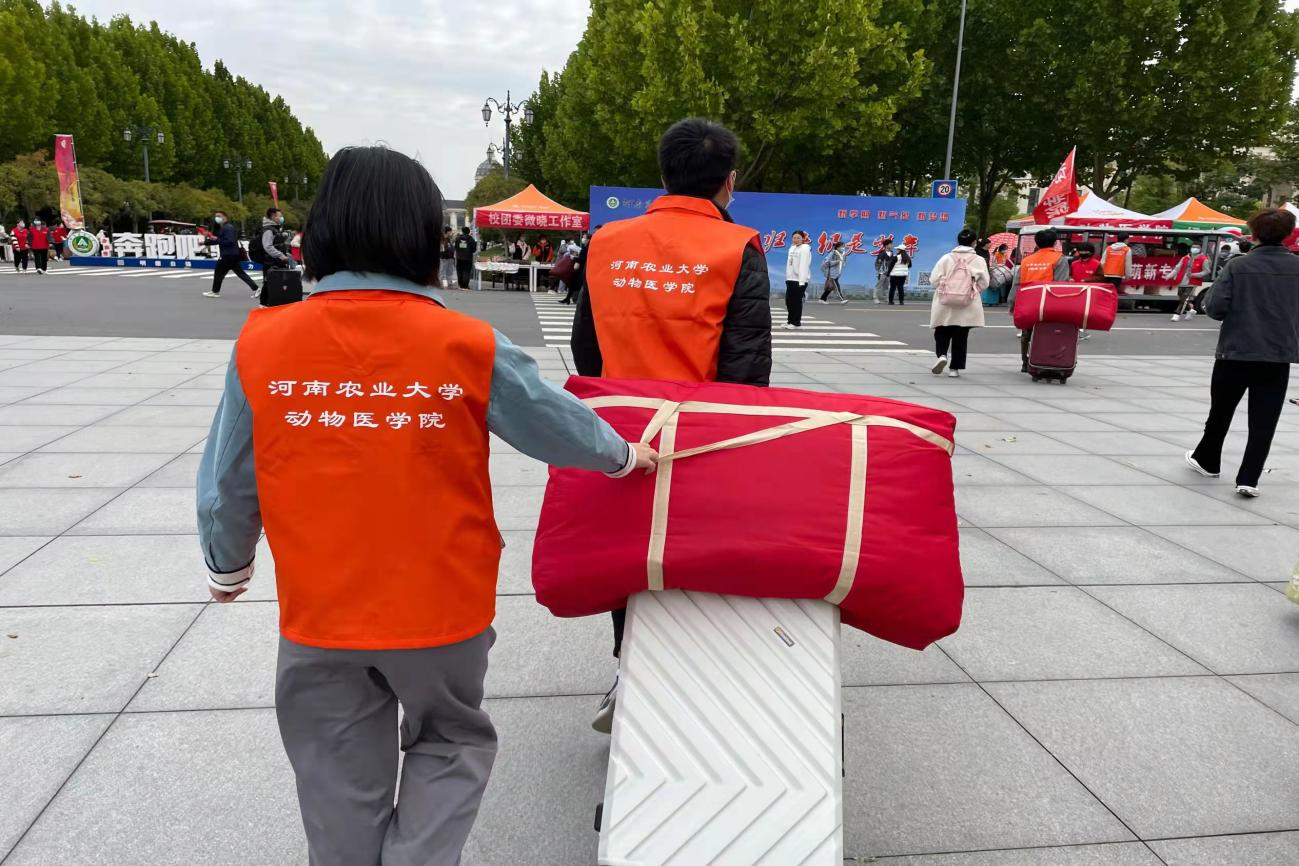 校园内彩旗迎风飘展,横幅鲜艳夺目,党员志愿者热情洋溢、分工明确。他们早早到位,各司其职,从大门口到宿舍一路都有党员志愿者的身影。初进校,志愿者便在大门口和指定迎新点迎接新生到来,一路带领新生进行信息登记、领取防疫物资等,帮助他们顺利完成报道手续;随后,第二批志愿者带领大家前往新生所在宿舍楼,并在路上充当向导工作,帮助新生熟悉校园;到达宿舍楼,第三批志愿者帮助新生搬运行李,解答新生疑惑;若新生行李过多,第四批志愿者会在宿舍楼下看守行李。四批志愿者的协同合作,为一个又一个前来报到的新生带来了极大的便利,他们热情的微笑浸润着每位新同学的心田。