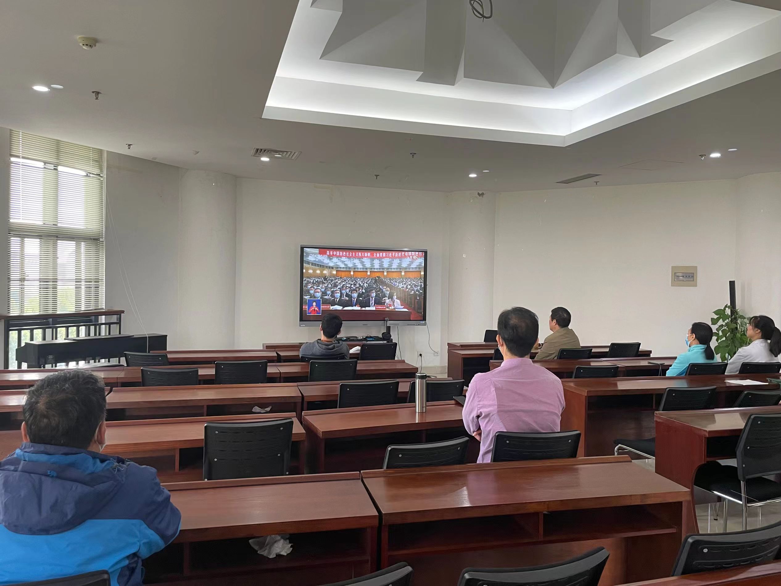 院领导班子成员集中观看直播。院领导班子全体成员在第一实验楼中408会议室集中观看党的二十大开幕会现场直播,认真聆听习近平同志代表十九届中央委员会向大会所作的报告,见证这个激动人心的历史时刻。