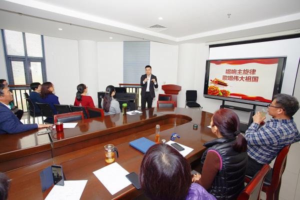 4月2日下午,预防兽医教工党支部于龙子湖校区第一实验楼430会议室成功举办以“唱响主旋律,歌唱伟大祖国”为主题的特色党日活动。支部特别邀请郑州星艺钢琴文化艺术学校校长段锋老师授课,预防兽医系全体教师以及其他声乐爱好教师参加了活动。