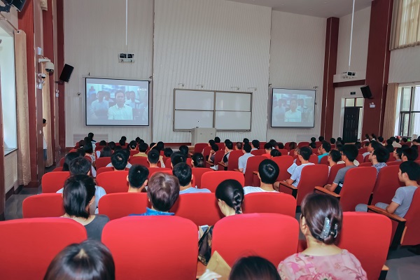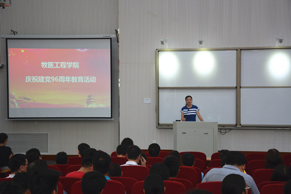 在龙子湖校区繁塔楼大教室6隆重举行庆祝建党96周年教育活动,学院全体教职工和学生党员参加。活动由院党委副书记牛娟主持。