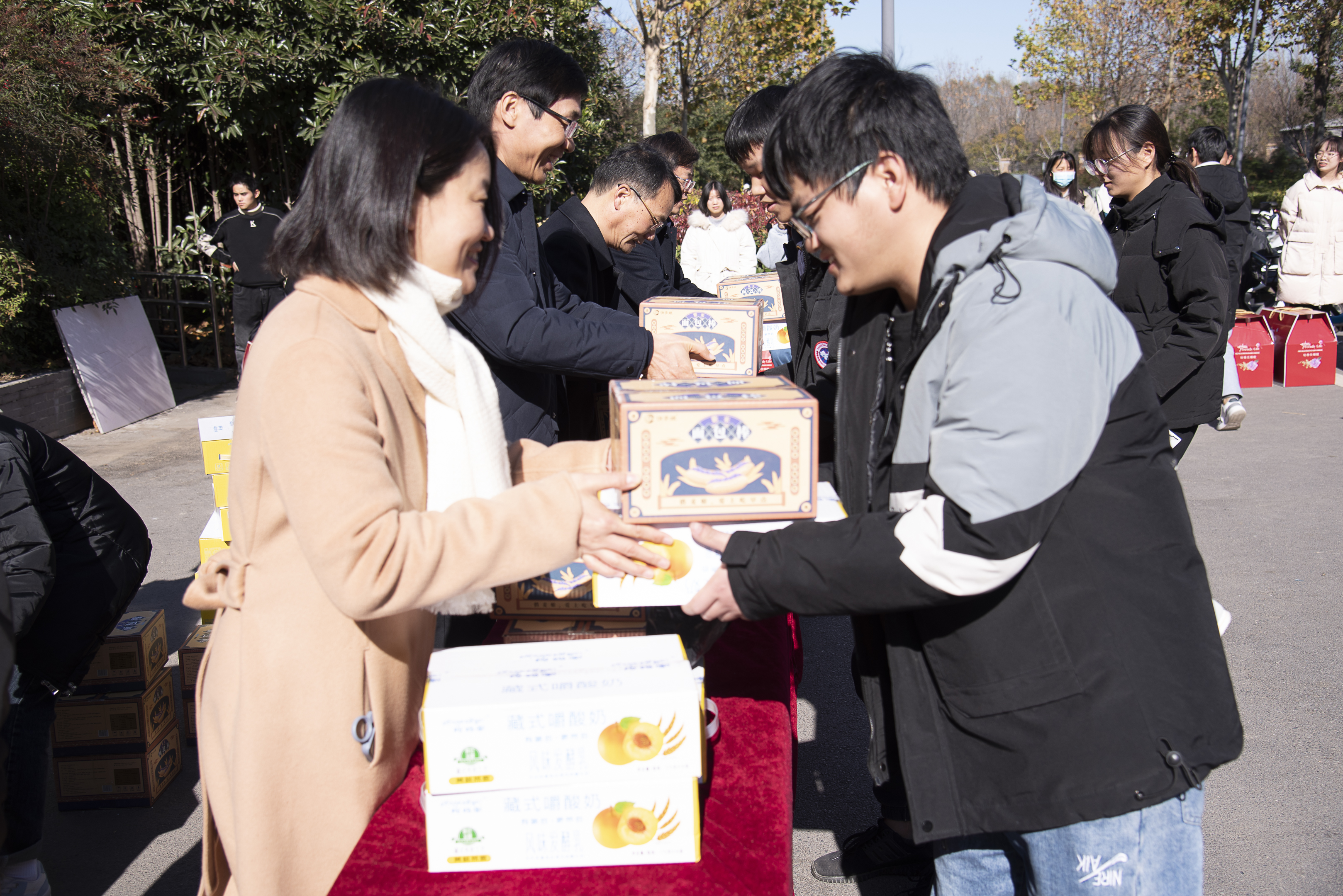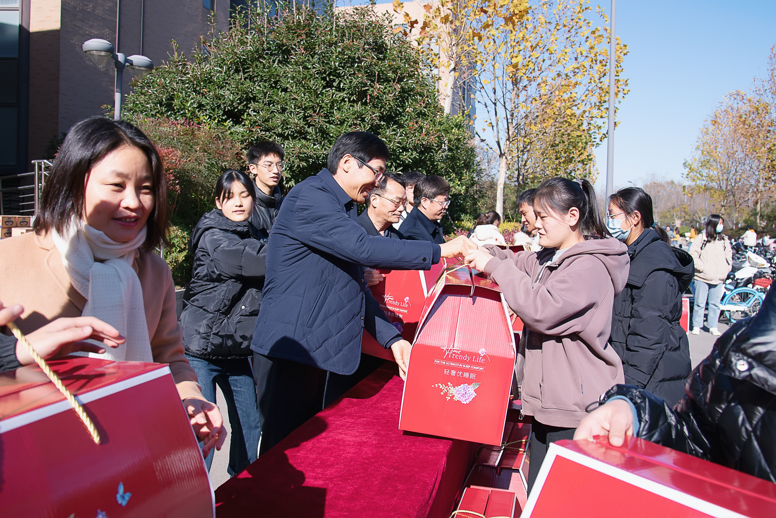 领导老师依次向在场学子表示慰问,送去冬日的温暖与祝福。并为同学们送上一箱面包、牛奶以及一床精心挑选的御寒棉被,为同学们艰辛的求学之旅带来温暖的同时,也蕴含着“包”你上岸、“牛”气冲天的美好寓意!寒风虽凛冽,布衾暖身心。到场学生收到暖冬礼品后十分感动,纷纷表示一定不负学院的期望与厚待,学农爱农服务于农,努力成长为对社会、国家有用的人。