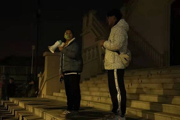 本次比赛共设置八个志愿服务点和一个大本营,其中包括七个加油服务点和一个圈数卡发放点,由团委老师和志愿者站岗服务,他们在运动场外加油呐喊、供需应求,一声声的加油团结了师生情,一杯杯的热水温暖了学子心。