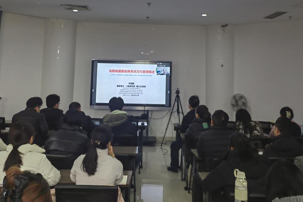 院长张龙现教授邀请,中国兽医协会常务副会长兼秘书长辛盛鹏研究员,在第一实验楼北530会议室以《当前我国兽医体系状况与管理概述》为题为丝袜av