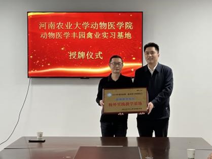 为深入了解本科生实习开展情况,提高学生实习效果,10月31日,副院长韩立强和实习带队老师王新卫、郝文博赴许昌动物疫控中心、南阳方城县牧原八分场、卧龙牧原第六分场和河南丰园禽业有限公司四家实习单位看望实习生。同时,为河南丰园禽业有限公司挂牌动物医学专业校外实践教学基地,丰园禽业总经理高航冉等相关人员参加。