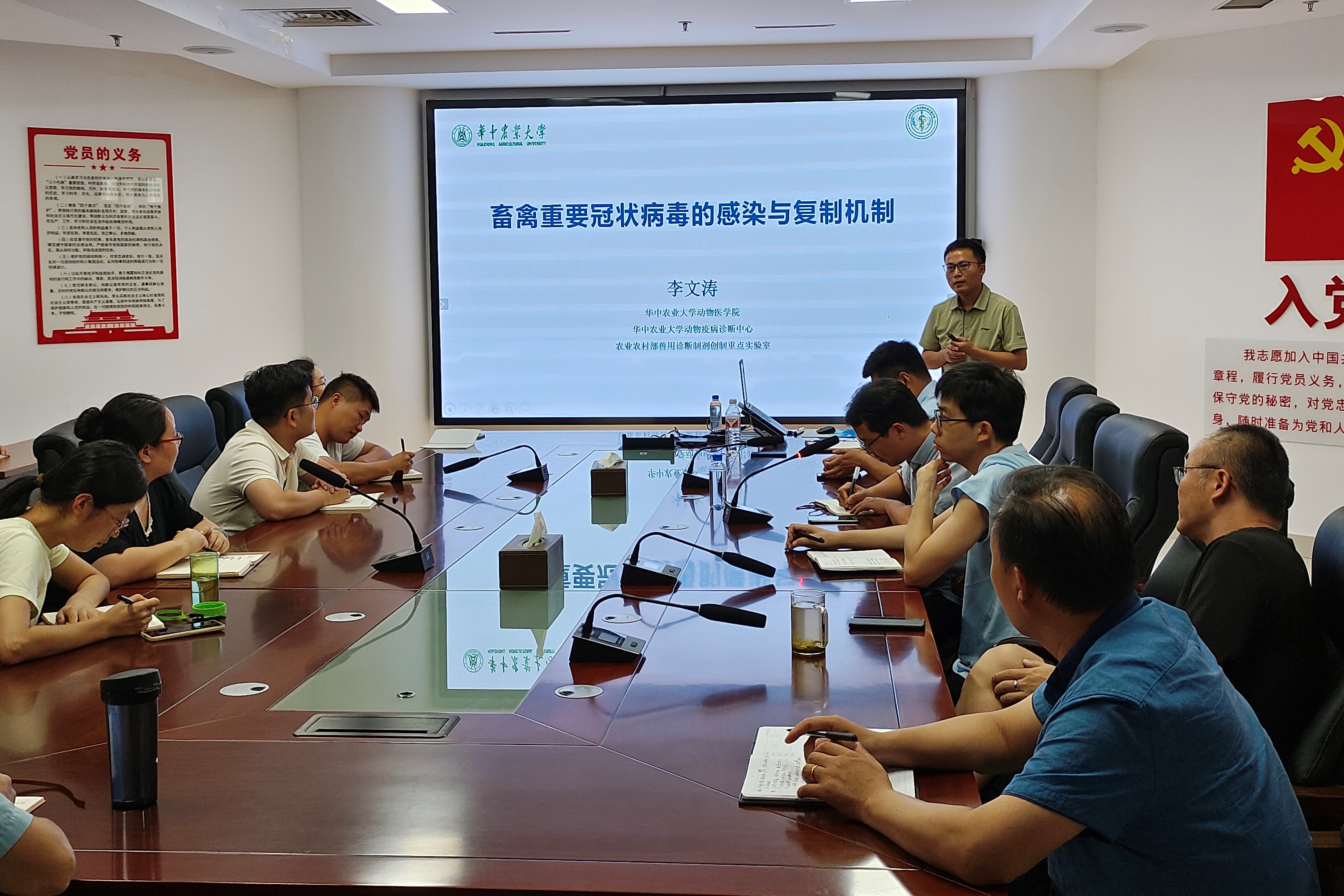 李文涛教授、武汉科前生物股份有限公司反刍动物研发中心张华伟博士在第一实验楼北430会议室分别以《畜禽重要冠状病毒感染与复制机制》和《反刍动物新型疫苗研究进展》为题为丝袜av