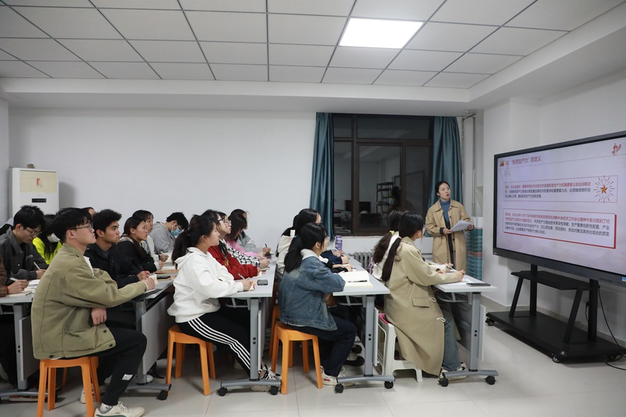 会上,冯佟就全国“两会”热词“新质生产力”进行了交流分享,结合农业院校实际情况及动物医学专业特点,分别从“新质生产力”定义、主要概念、重要意义、如何形成(发展)新质生产力四个方面与青马班学员进行了交流研讨。