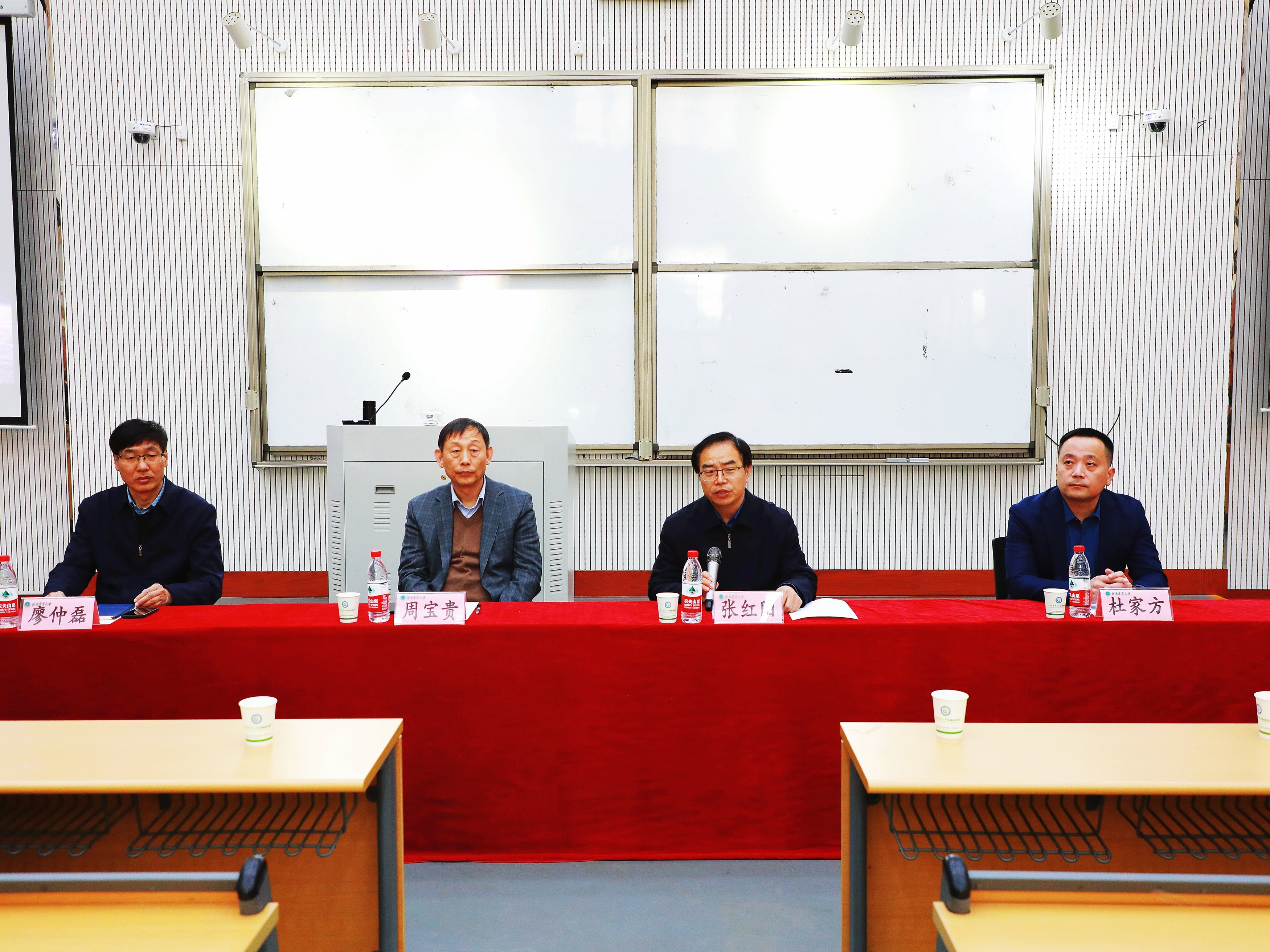 张红阳对周宝贵一行来表示欢迎并介绍了学校就业相关情况,他指出种业是国家战略性、基础性的核心产业,是促进农业长期稳定发展、保障国家粮食安全的根本所在。希望同学们认真聆听本场报告,夯实理论基础,强化专业学习与实践能力提升。