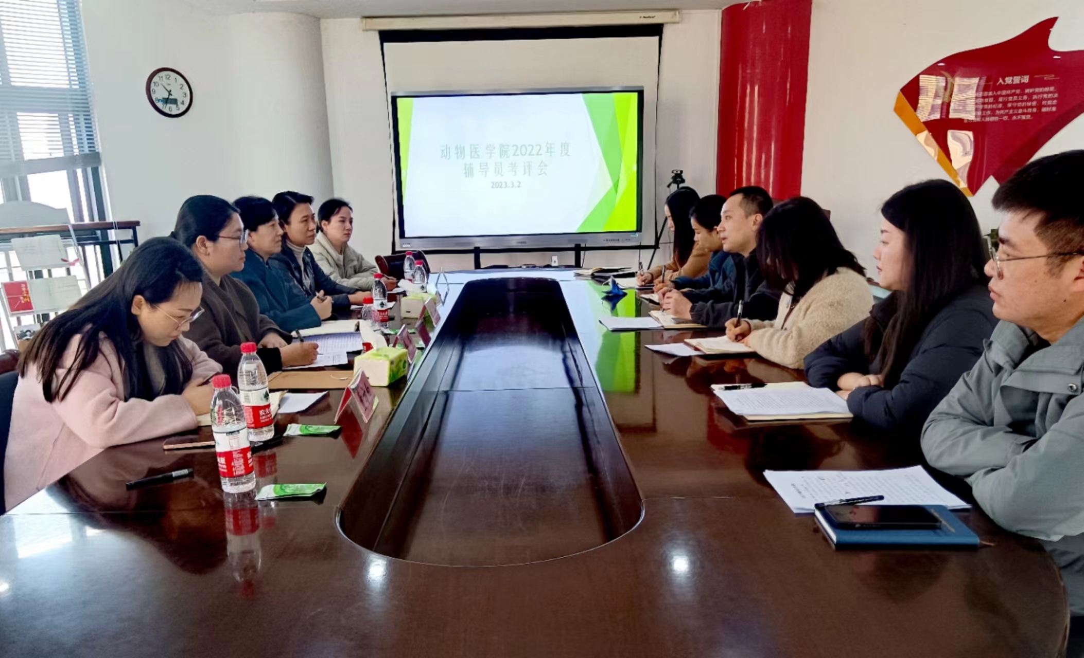 专职辅导员进行2022年度工作考核。校党委学工部副部长张利军、考核组成员出席考核会议,学院党委副书记杜家方、全体辅导员参加考核。会议由考核组组长余果主持。