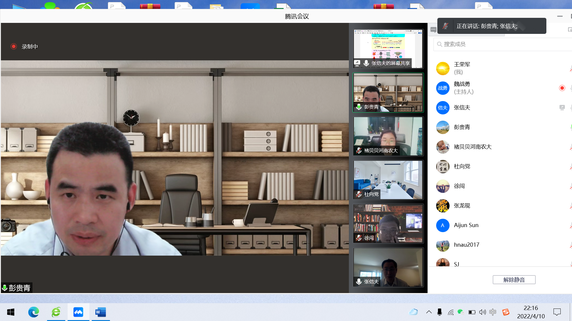 使用腾讯会议在线举行2022年度国家自然科学基金海外优青项目申报论证会。中国农业大学国家自然科学基金杰青获得者徐闯教授、华中农业大学国家自然科学基金杰青获得者彭贵青教授受邀对丝袜av