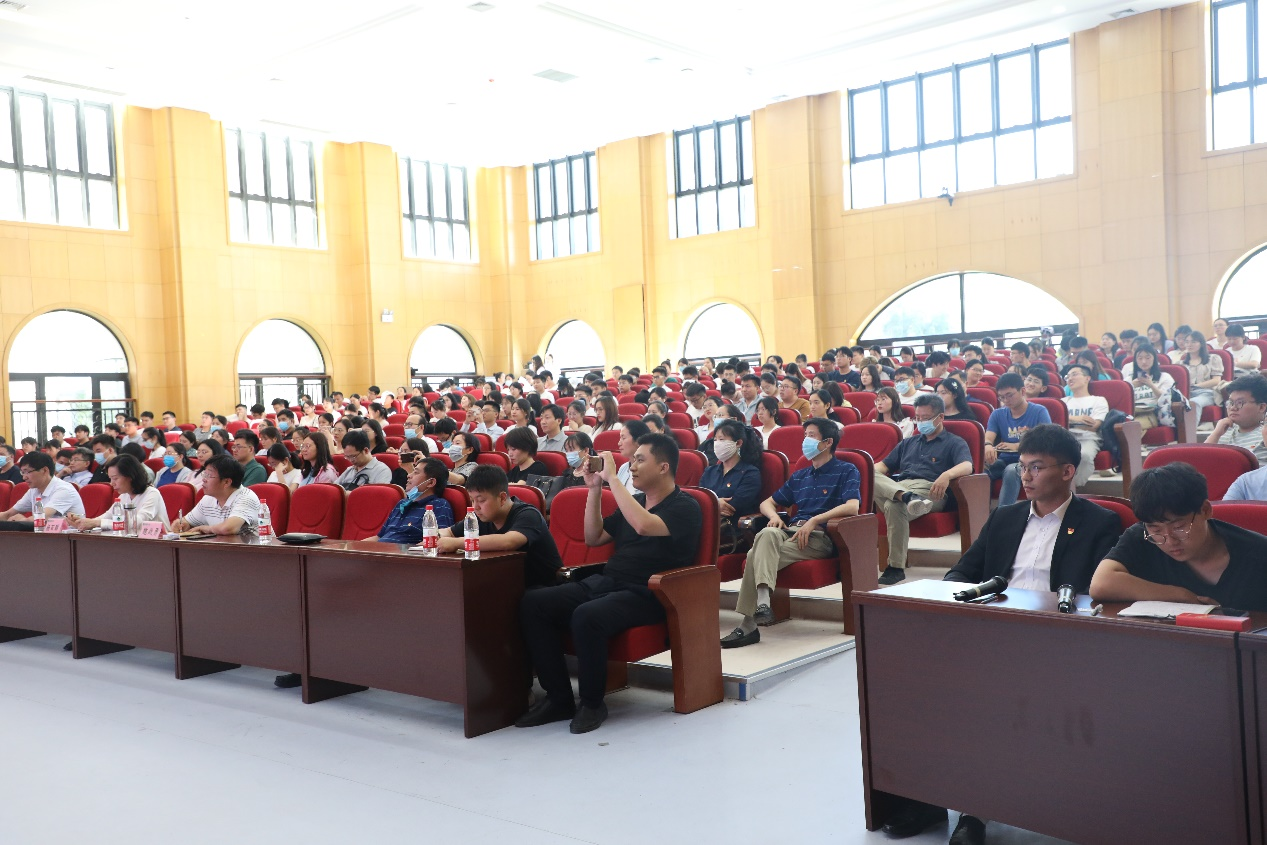 全体师生党员参加讲座。讲座由院党委书记廖仲磊主持。