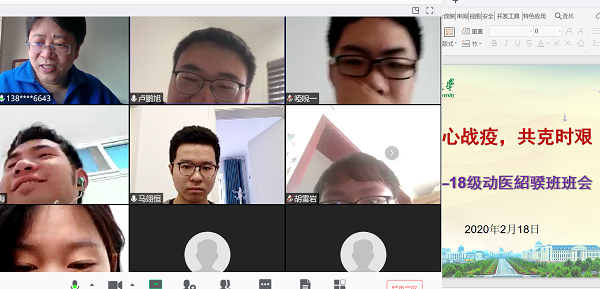 学院第一时间在辅导员、班主任中传达了工作精神,并结合任课老师、网络课程等,通过网络视频的新手段有序开展班会。16级动科1班解读了“敬、静”二字,引导大家做到“四个一”:即开展一次集体学习、进行一次公开承诺、研读一本经典佳作、做好一次短期规划;17级动医1班寓教于乐,班主任推荐了《传染病》等4部影片,建议大家课余时间观看,加深对生物安全的认知;18级动医绍睽班班主任结合自身专业研究,用通俗易懂的语言向大家介绍了冠状病毒的相关知识及有效防控手段,并做出心理疏导;19级畜工1班播放了王泽霖教授视频,学习了公共场所疫病防控科普视频及新冠病毒防控指南。其他各班也各具特色,纷纷结合身边事例,引导学生讲疫情、讲防护,做到不信谣不造谣不传谣,树立战胜疫情的坚定信心;讲纪律、讲要求,严格服从学校疫情防控工作的部署要求,认真进行线上学习,做到防疫学习两不误;讲责任、讲大局,激发学生爱国主义热情,增强民族自豪感和自信心,彰显当代大学生的责任与担当。
