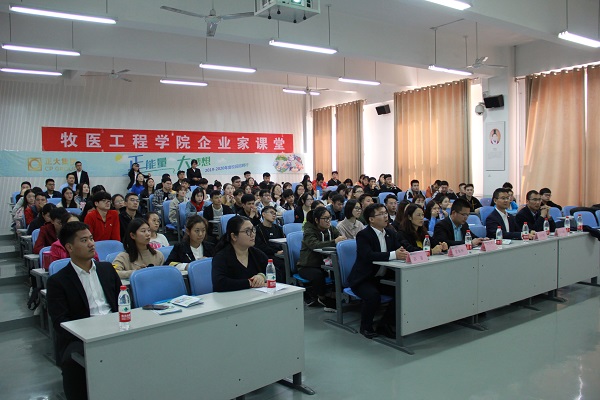 活动伊始,郭峰结合自身经历向学生们分享了毕业前与工作后心态的变化,强调个人第一份工作的重要性。随后,郭峰分析了畜牧兽医行业的发展形势,认为该行业为朝阳产业,着重强调学生选择企业时应着重关注该企业的行业口碑、企业实力、以及个人发展空间等3方面,勉励大家做一个诚信正直、具有良好心态的人。郭峰的交流诚恳幽默,引发现场的热烈掌声。