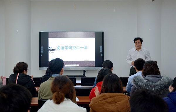师生作了题为《免疫学研究二十年》的“龙湖论坛”专题学术讲座。学院部分教师、博士研究生和硕士研究生近80人聆听了此次专题学术讲座。