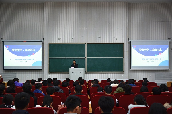 在龙子湖校区繁塔楼大教室七,与会领导首先为丝袜av