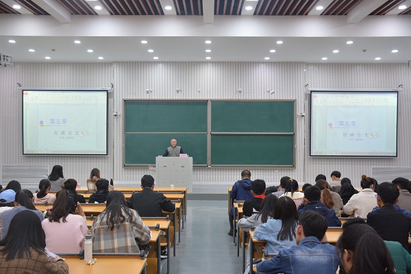 会议伊始,吴海峰以公务员考试为例说明了公文写作的重要性和在以后工作中的应用性。随后,他以写作格式为切入点,全面细致地展开讲解。重点讲述了报告、通告、请求、批复和通知等常用公文的适用范围、特点、写法及写作时的注意事项。报告中,吴海峰用事例法、对比法等教学方法,深入浅出、举例贴切,现场效果良好。
