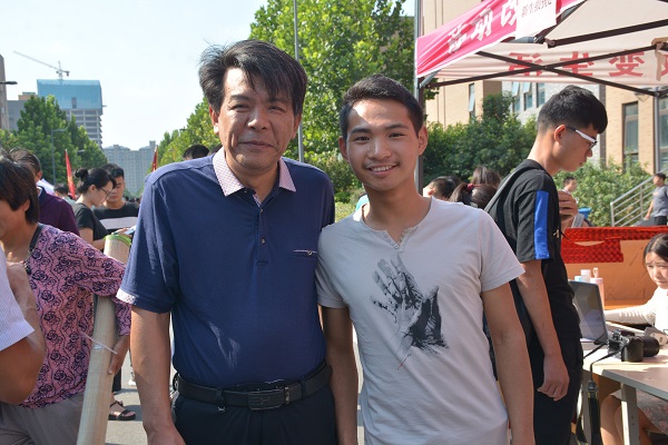 新生与家长留下进入大学后的第一张合影