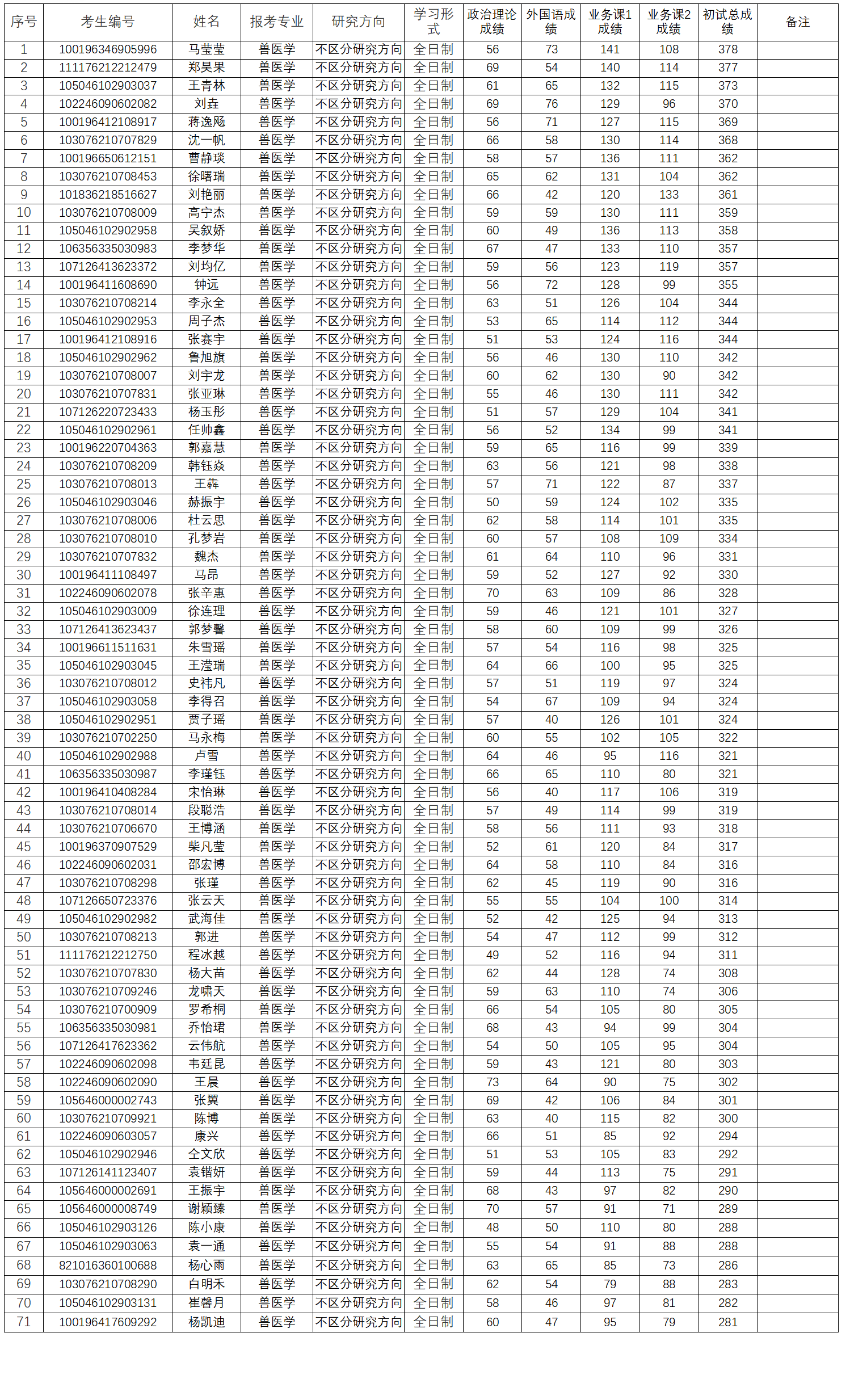 丝袜av 兽医学专业2026年硕士研究生复试名单公示(调剂生)